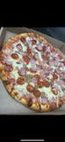 Pepperoni, ham, bacon, sausage, mushrooms, onions, green peppers.