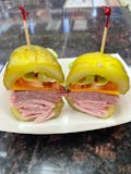 Fresh romaine, cucumbers, tomato, green peppers, red onion, black olives, ham salami, mozzarella cheese.